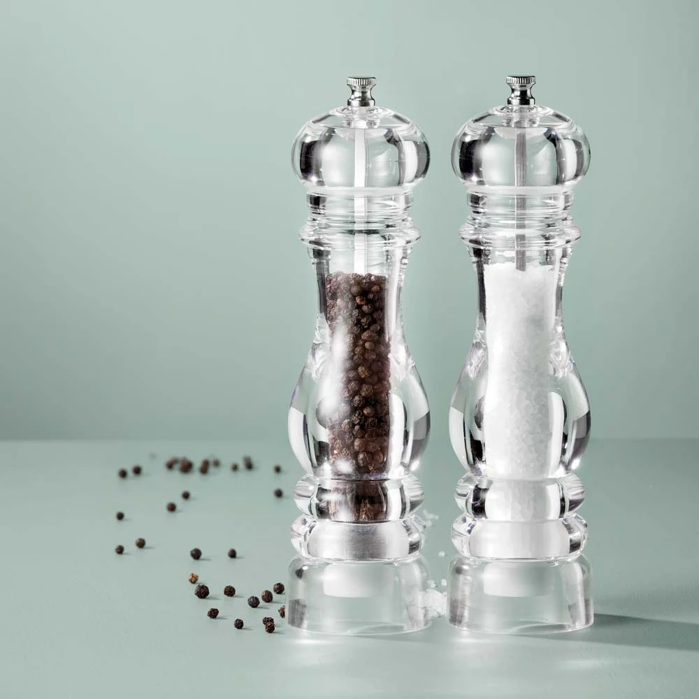 - Both feature a universal grinding mechanism suitable for pepper corns or rock salt