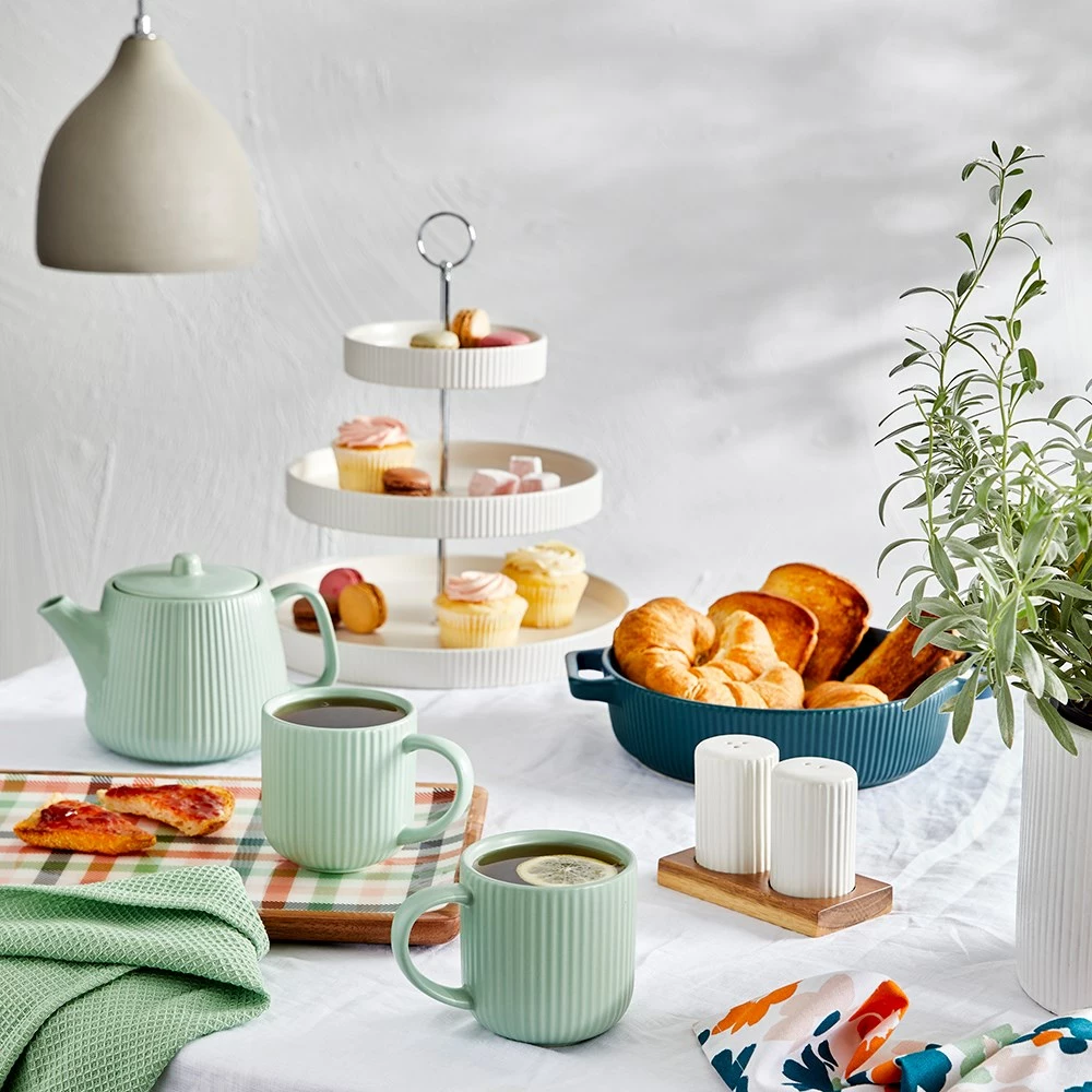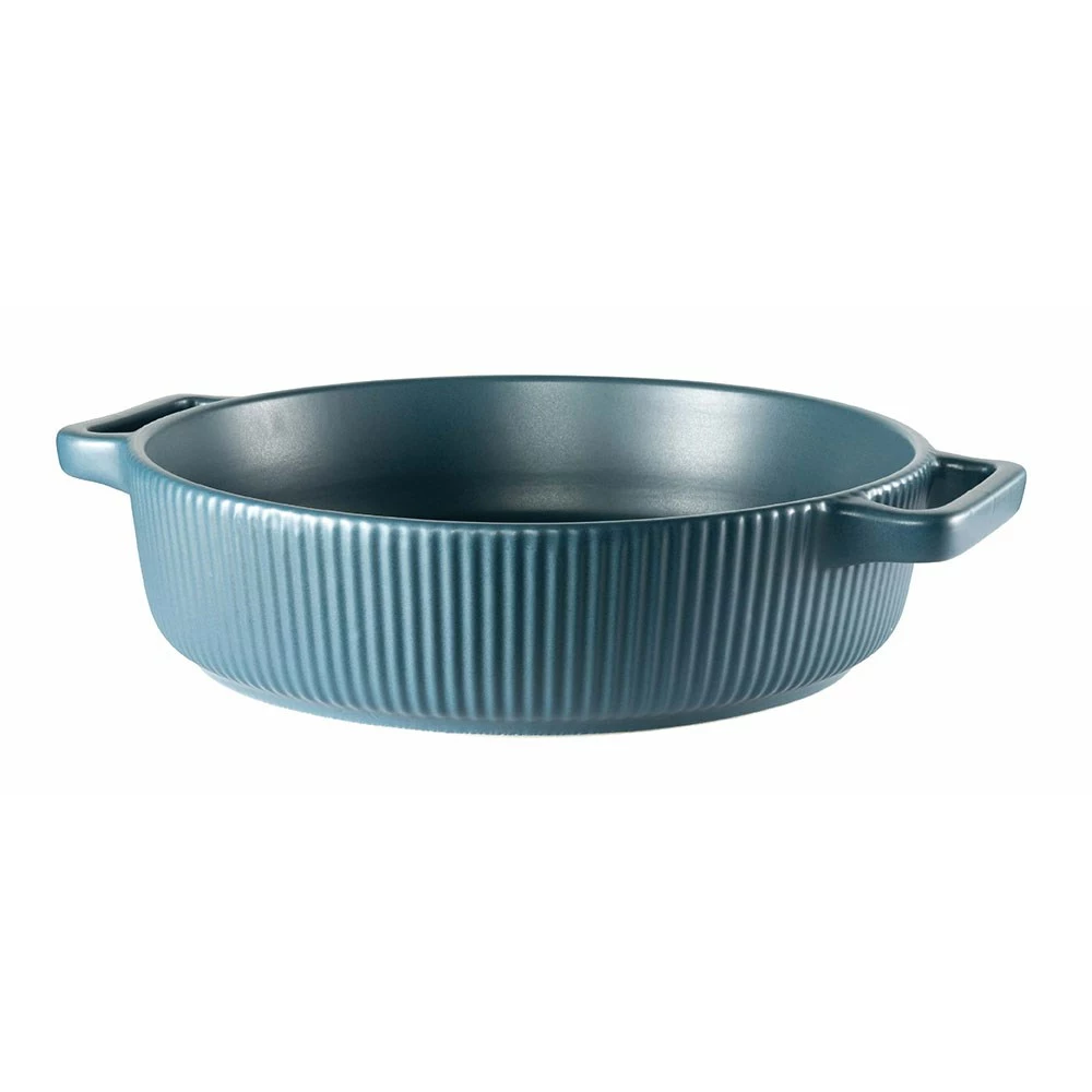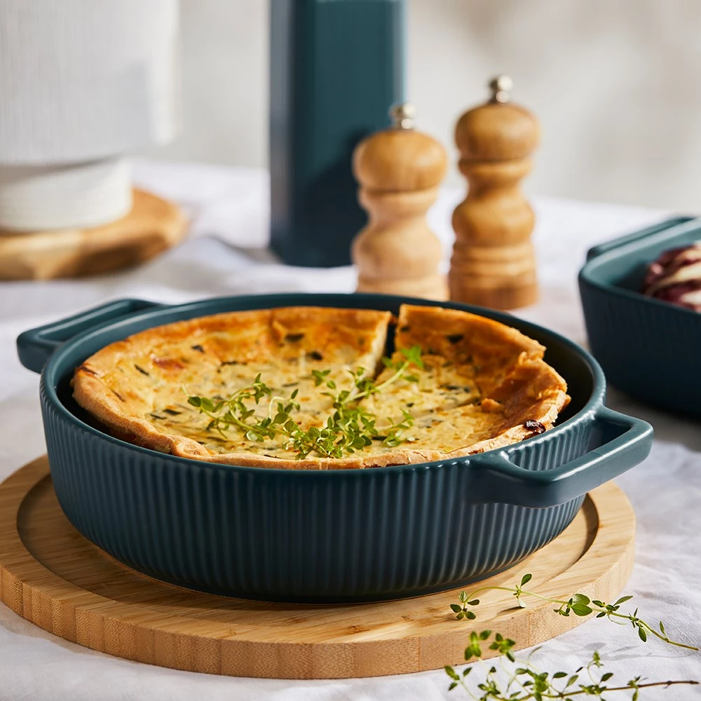 Create delicious baked goods with the Alex Liddy Harley II Round Baker 29cm in Teal. The Harley range, a name that means from the hares’ wood, brings you luxury products designed with woodland tones to beautify your kitchen and home. This baking dish is designed for baking delicious recipes such as pies, cakes, and slices. With a ribbed edge detail and soft teal colour palette, this baking dish adds a dash of sophistication to your home kitchenware collection. At 29cm it has a generous capacity and can fit plenty of your favourite dish. This baking dish makes a great gift idea for keen home cooks and bakers. Dishwasher safe for your convenience.