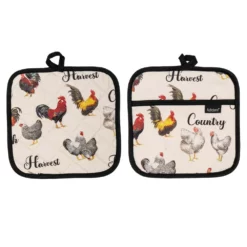 Warm the heart and soul with the wholesome, country-living-inspired Ashdene Set of 2 Oven Mitts. Tying in with the Heartland breakfast collection, the Ashdene Set of 2 Oven Mitts carries the theme throughout the kitchen too. The oven mitts, in an earthy cream colour with contrasting black details, feature a charmingly diverse range of chickens and wholesome words. They help to keep your hands protected while handling hot trays and dishes from the oven. The mitts are crafted from high quality 100% cotton and completed with a stylish twill digital print finish. Machine washable for fuss-fee care, pair the Ashdene Set of 2 Oven Mitts with the coordinating Heartland apron, pot holders and kitchen towels to create a welcoming atmosphere.