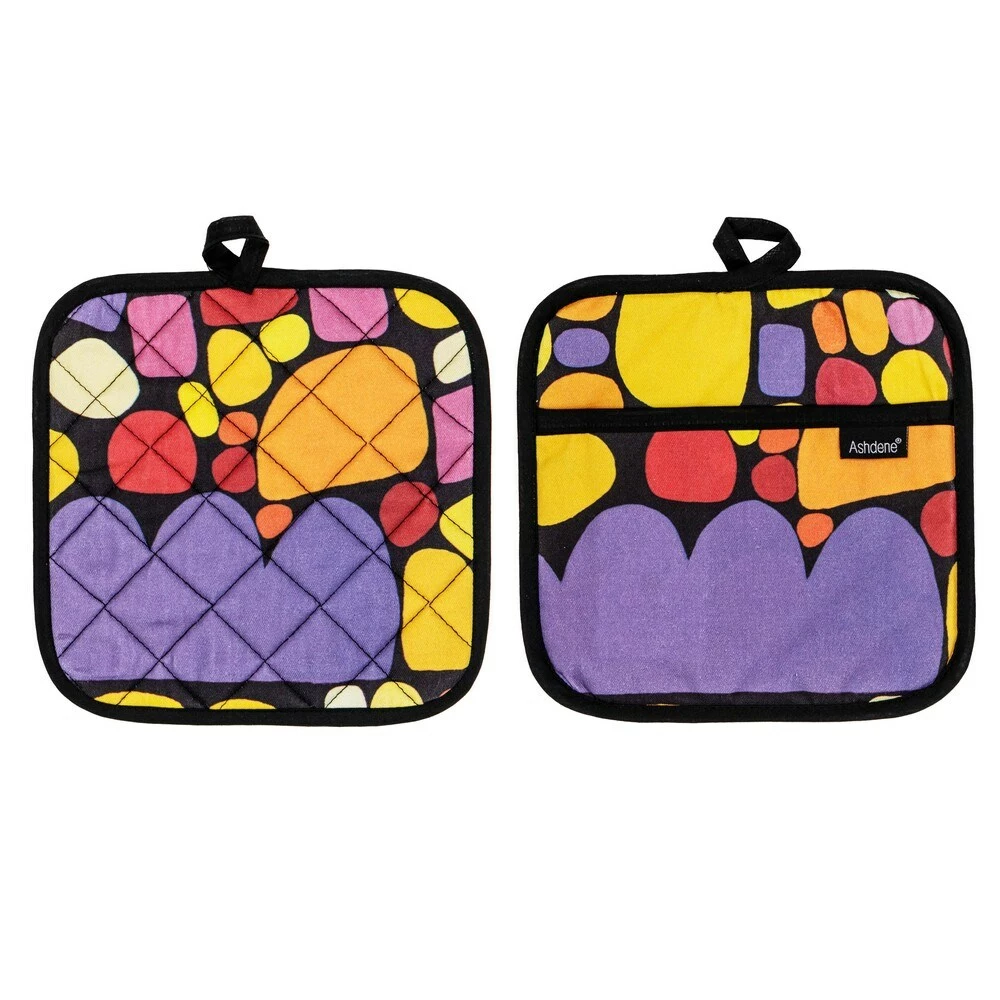 Brighten your kitchen with the inspiring aesthetic of the Ashdene Puli Puli Set of 2 Pot Holders. Designed by internationally renowned Australian artist Keturah Zimran, the Ashdene Puli Puli Set of 2 Pot Holders features her distinctive and bold style that draws inspiration from the organic colours and shapes of the ancient Australian landscape. Constructed from quality 100% cotton, they help to keep your hands protected while handling hot pots and pans around the kitchen. Machine washable for fuss-free care, pair the Ashdene Puli Puli Set of 2 Pot Holders with the coordinating Puli Puli apron, oven mitts and teatowel to create an inspiring kitchen atmosphere.