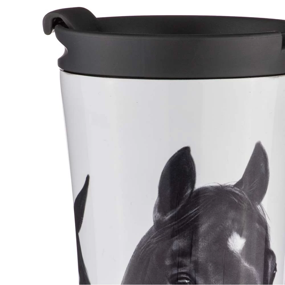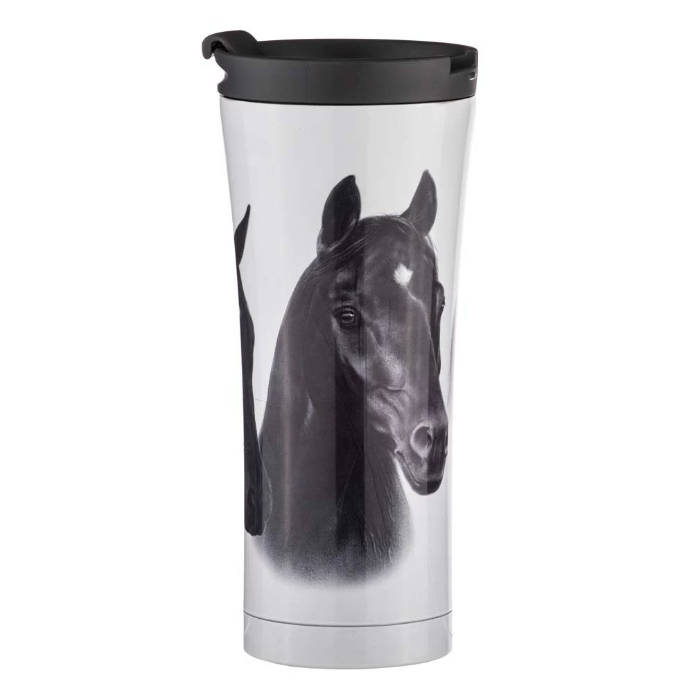 - 500ml Travel mug enhances drinks on the go with a touch of equestrian beauty