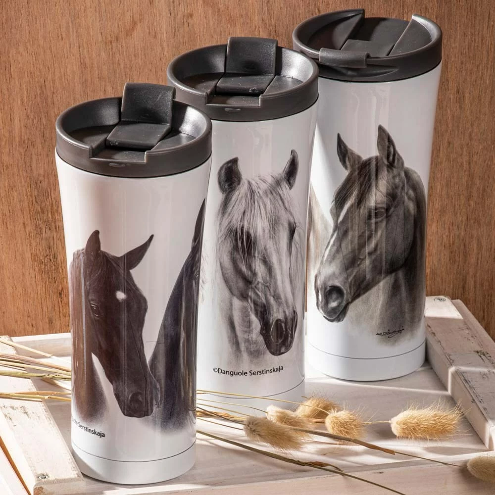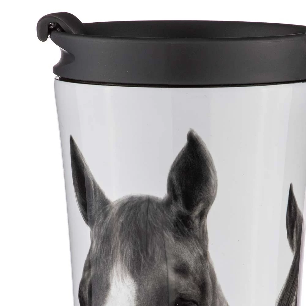 - 500ml Travel mug enhances drinks on the go with a touch of equestrian beauty