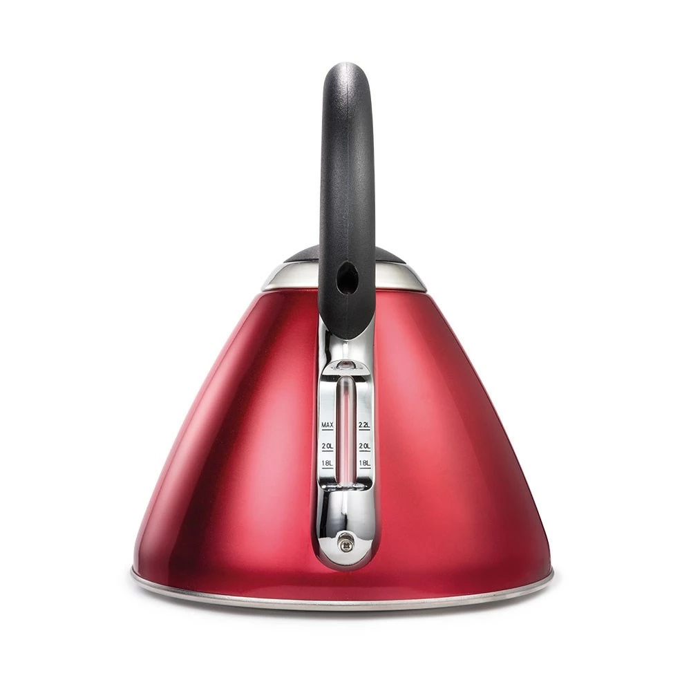 Host the ultimate afternoon tea with the stylish and functional Baccarat Barista Italico Stovetop Whistling Kettle! Generously sized, this kettle holds a capacity of 2.2 litres and is suitable for use on all stovetops including induction. It is designed for your convenience with an easy view water level indicator and a stay cool handle that has been ergonomically designed for comfort, handling and pouring. The Barista Italico Stovetop Kettle features a high domes stainless steel lid that fits perfectly to the stainless steel body. It is designed with an aluminium encapsulated base for greater heat transfer and will whistle to indicate when it has finished boiling. With a vibrant cherry red colour scheme, this kettle brings a burst of vibrance to your kitchen. Boil water for your teas, coffees, hot water bottles and more with this stylish and ultra-durable Baccarat Barista Italico Stovetop Whistling Kettle!