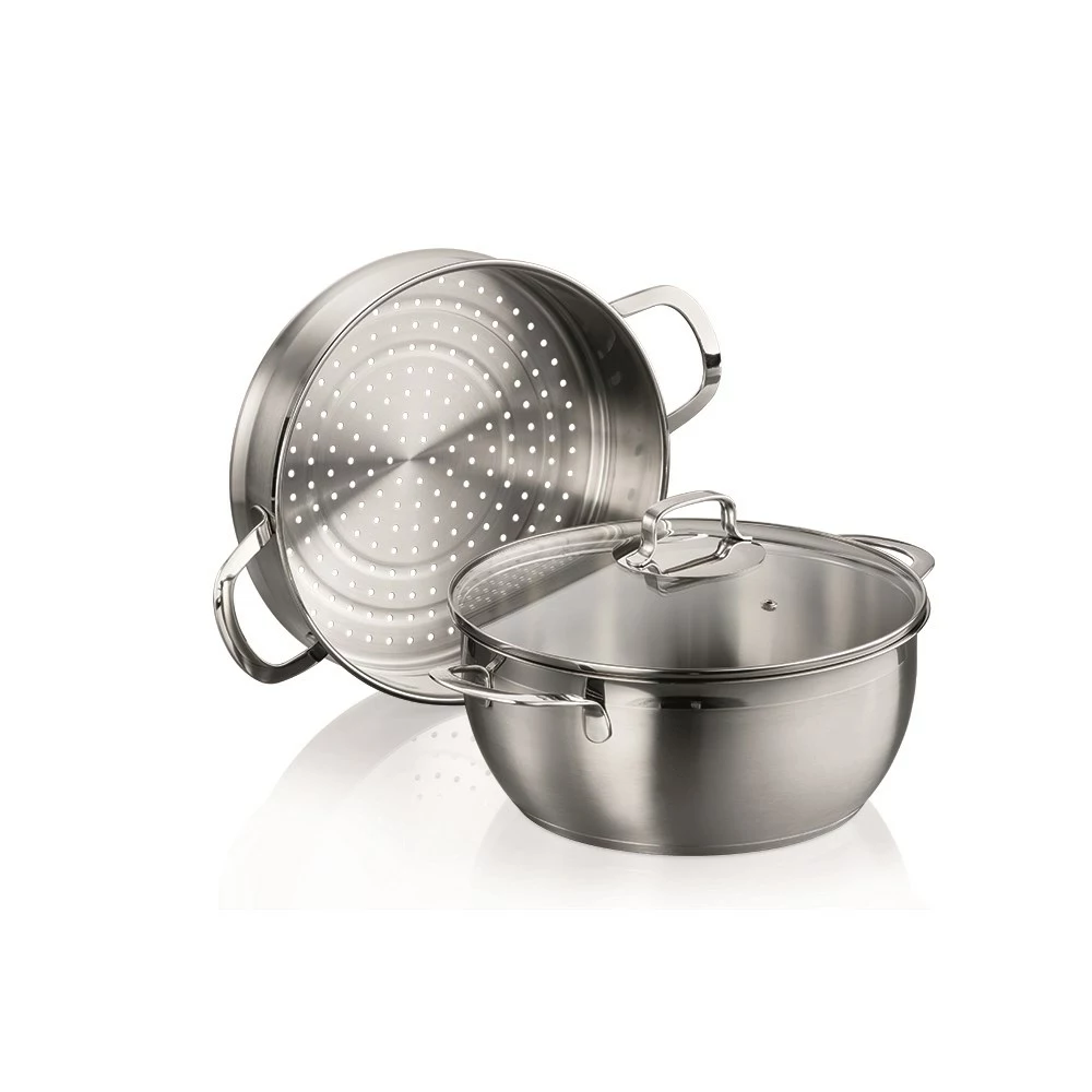 - 2 Piece kitchen essential set includes a 6L casserole pot and steamer insert with tempered glass lid