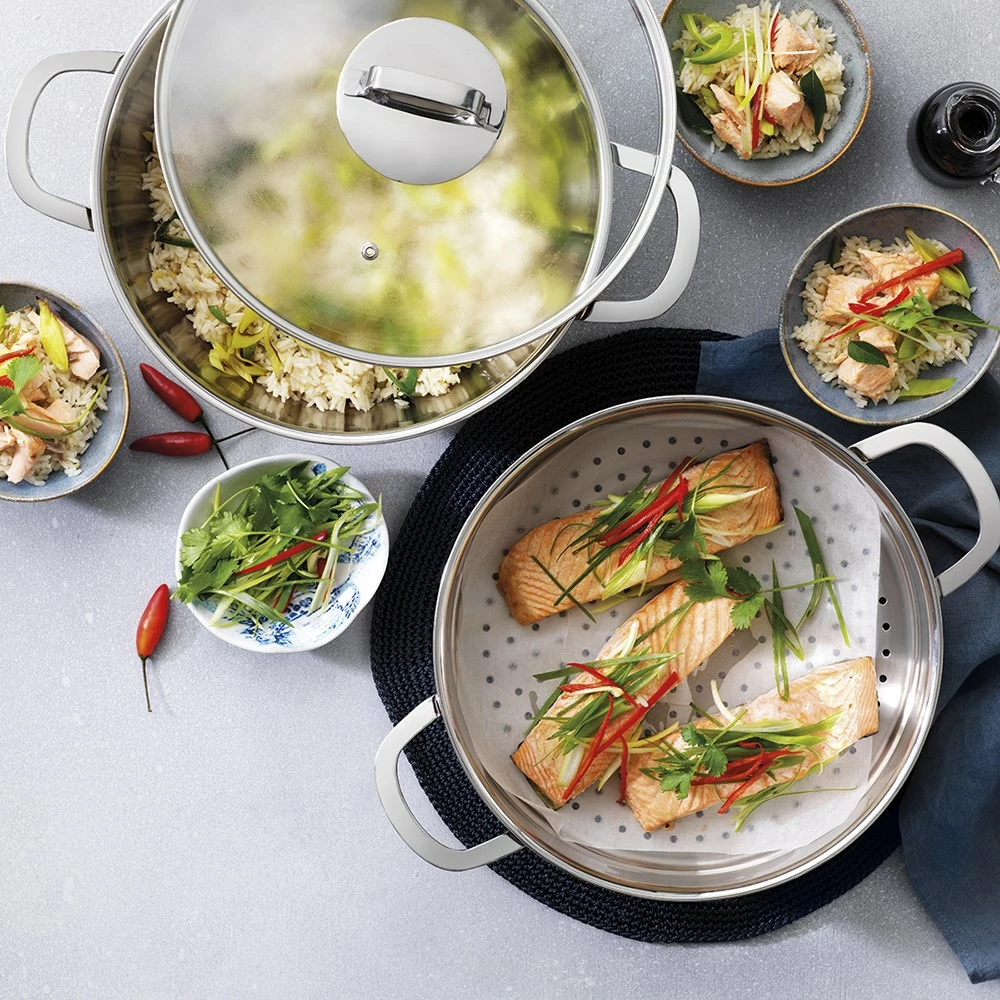 - Ideal for cooking rice and pasta dishes, blanching vegetables, steaming fish and more all at once