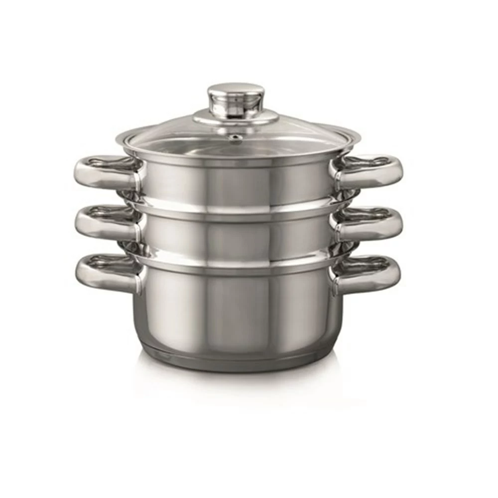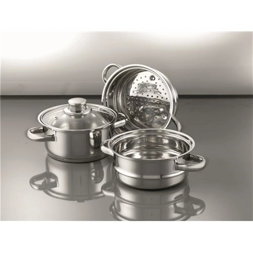 Enjoy the convenience and efficiency of multi-level steaming with the Baccarat Gourmet 3 Tier Stainless Steel Steamer Set