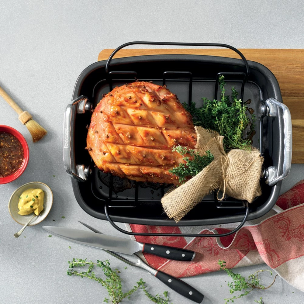 Achieve flavoursome roast dinners for your family to enjoy with the high-performance non-stick Gourmet Carbon Steel Roaster with Rack by Baccarat!