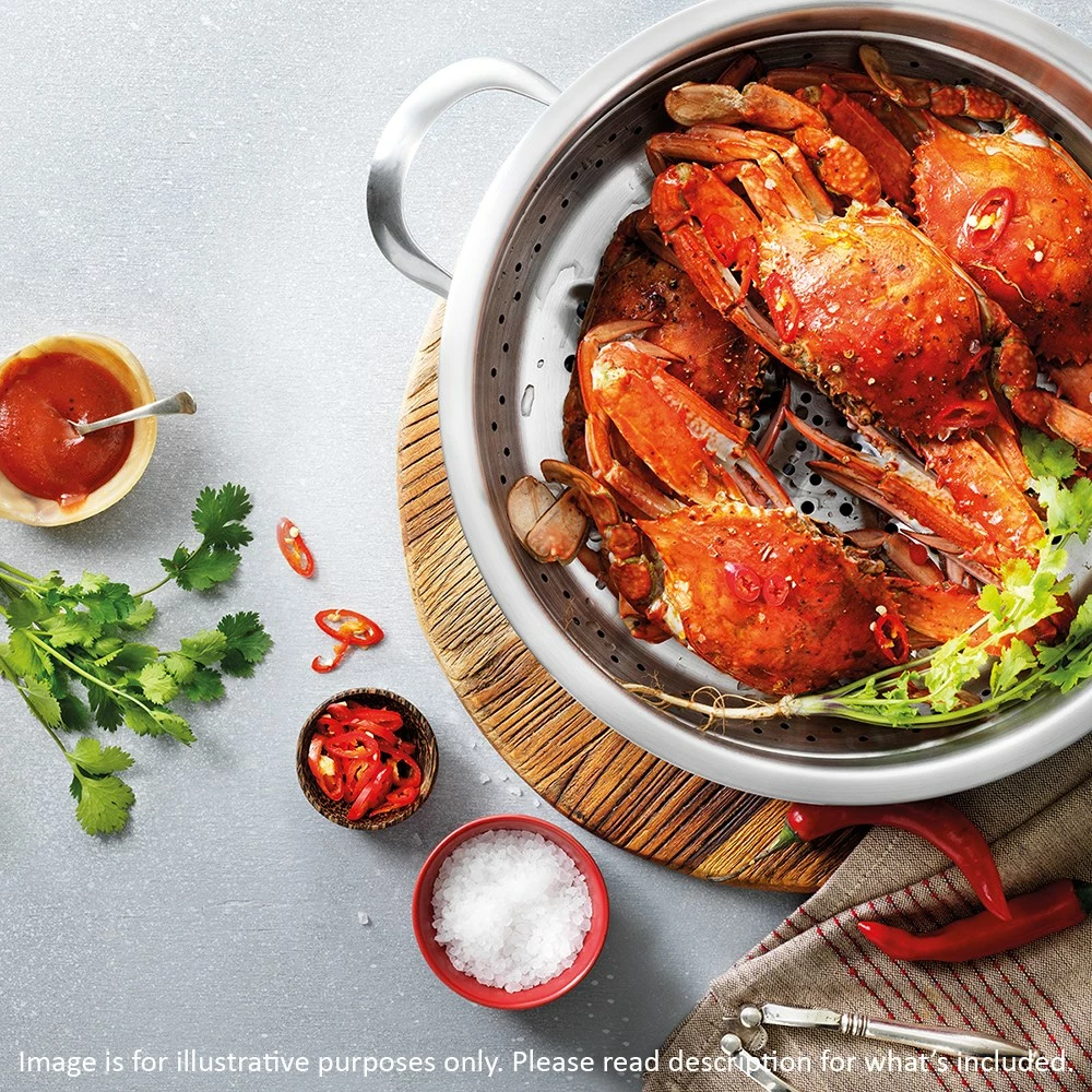 Enjoy delicious, nutrient rich dinners, cooked to perfection using the Baccarat Gourmet Stainless Steel Steam Insert! Ideal for steaming vegetables, seafood, dumplings and more, this insert is a great way to achieve healthy meals. It is made from 18/10 superior stainless steel for enduring durability and offers long-lasting performance. Generously sized, this steamer insert is a perfect fit for your 28cm saute pan. It has a deep body that’s perfect for cooking seafood and features steam holes across the base of the pan and around the sides to allow maximum steam to circulate around and over the food. Upgrade your culinary collection and enjoy regular healthy meals with the Baccarat Gourmet Stainless Steel Steam Insert!