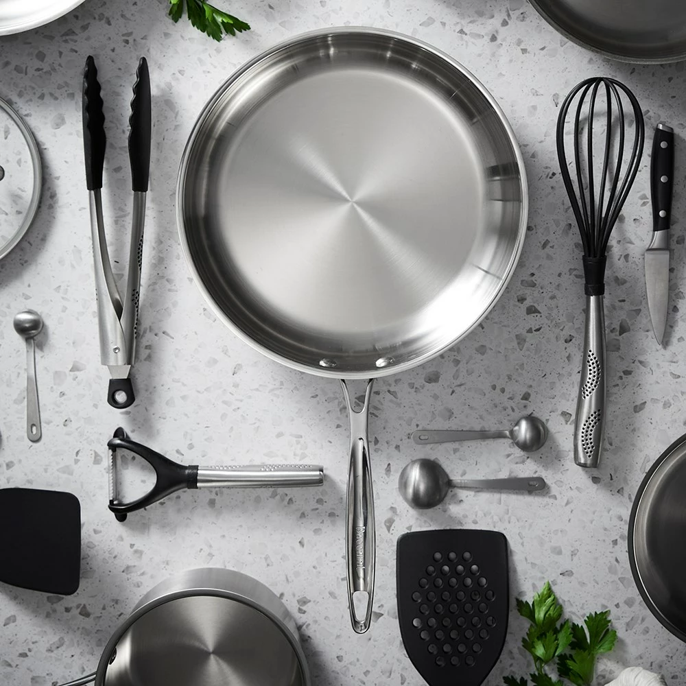 Enhance your kitchen with superior quality cookware using the Baccarat iconiX 28cm Frypan. Made from the highest grade 18/10 stainless steel and with a durable 5mm aluminum impact bonded base that works to distribute heat evenly, the Baccarat iconiX frypan is a must-have cookware piece for any kitchen. With an easy clean mirror finish interior and stay cool cast stainless steel riveted handles, the Baccarat iconiX 28cm Frypan will make cooking like a professional part of your everyday life. The Baccarat iconiX range is suitable for all cook tops including induction and is dishwasher safe for your convenience.