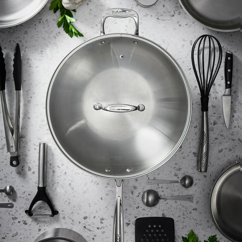 Whip up a veggie, noodle or rice stir fry good enough to rival your favourite take away with the iconiX Stainless Steel Wok with Lid & Helper Handle from Baccarat!
