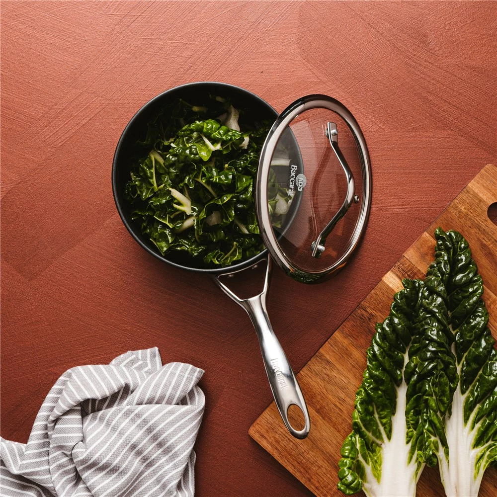 Enjoy non-stick cooking with the Baccarat iD3 Hard Anodised 18 x 11cm Saucepan With Lid