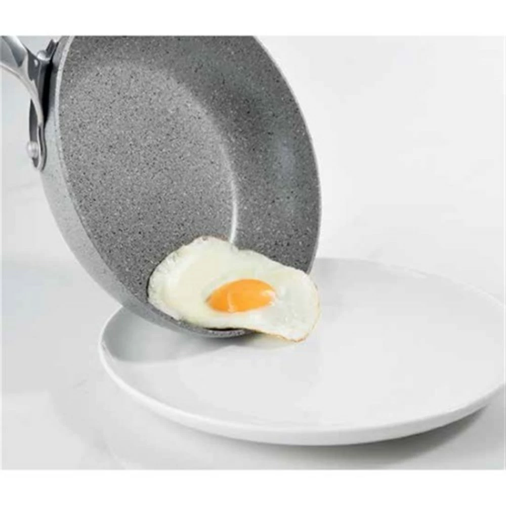 Arm yourself with superior non-stick cookware using the Baccarat Italico Frypan 30cm. Featuring a grey stone like non-stick surface, the Italico Baccarat collection is environmentally friendly and PFOA pollution free, allowing for healthy fat and oil free cooking. The heavy gauge body contains an extra thick base providing an effective and even heat distribution for reducing cooking time. A full stainless steel induction plate has been added to the base of the pan to ensure the pan will be warp resistant and makes it suitable for all cooktops, including induction. The Baccarat Italico Frypan 30cm is dishwasher safe for easy cleaning making it an excellent addition to your cookware collection.
