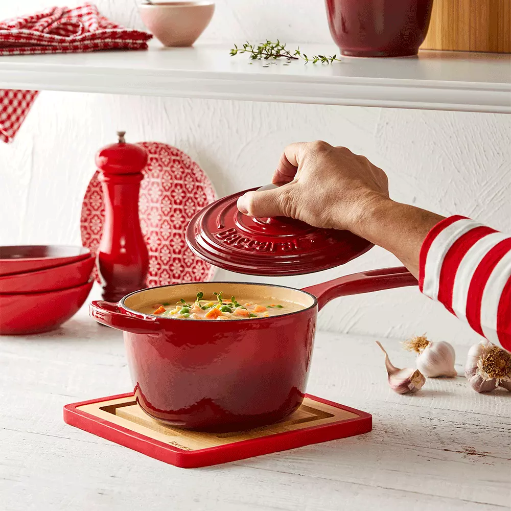 Prepare tasty meals with ease and achieve exceptional flavours every time with the Baccarat Le Connoisseur Cast Iron Saucepan 16cm 1.5L in Red.