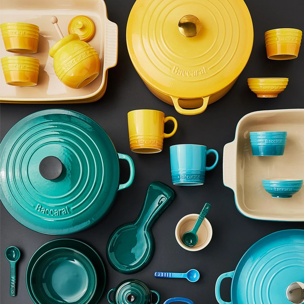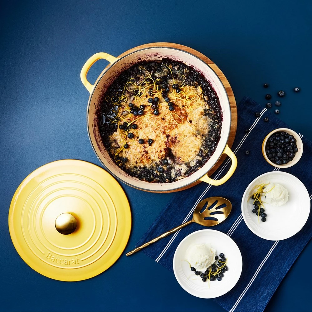 A cast iron frame is used for Le Connoisseur cookware, due to it being one of the best materials for retaining, conducting and distributing heat evenly. The heavy thickness of the body and lid is designed to encase heat around the food for exceptional cooking results. Self basting spikes have been applied on the surface of the lid to collect and direct moisture back into the dish, creating a juicy and succulent meal. Transport your food from cooktop to table, with generously sized handles that ensure your French Oven is easy to hold and carry. Enjoy familiar, rustic styling with an easy clean double layer enamel surface, that requires absolutely zero seasoning out of the box. The Baccarat Le Connoisseur Round French Oven 6.3L is oven and dishwasher safe, and suitable for all cooktops including induction.