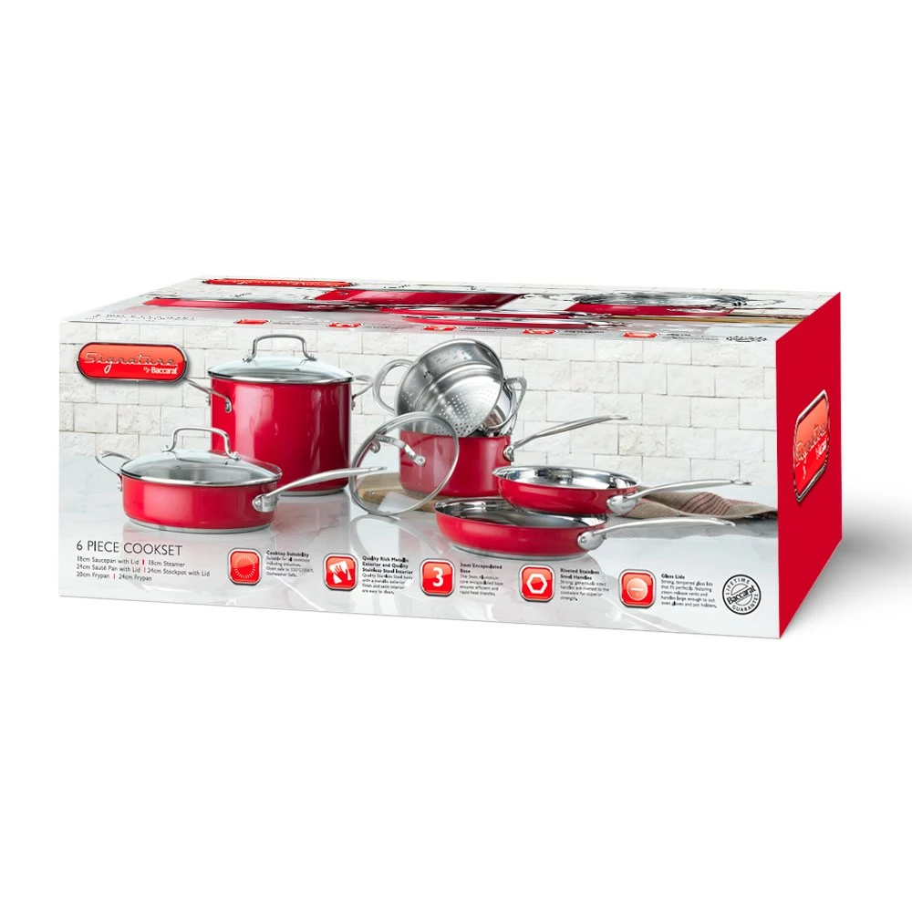 Cook a hearty meal to be proud of with the Baccarat Signature Stainless Steel 6 Piece Cookset Red