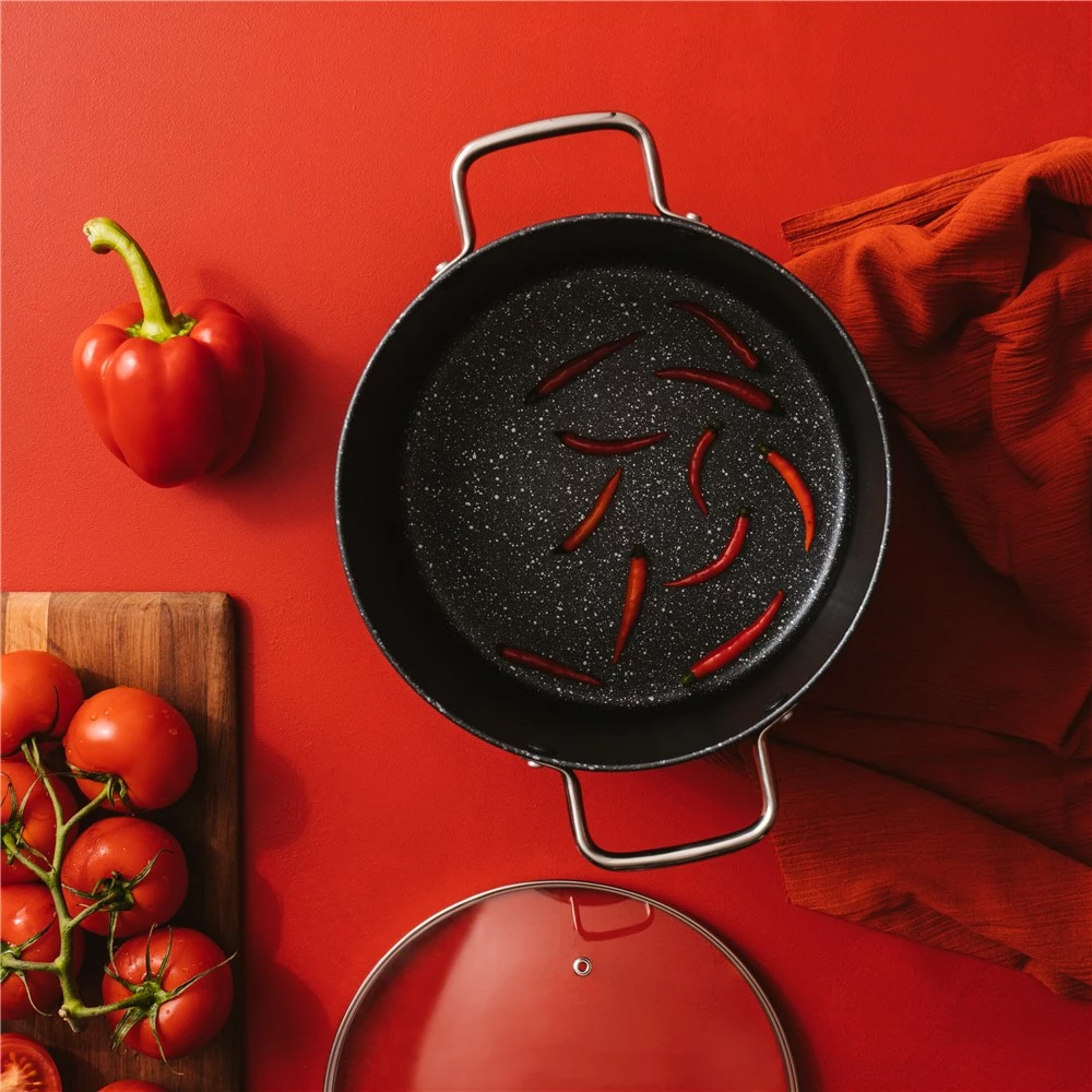 - Aluminium body provides a rapid and even heat distribution, ensuring your food is always cooked thoroughly