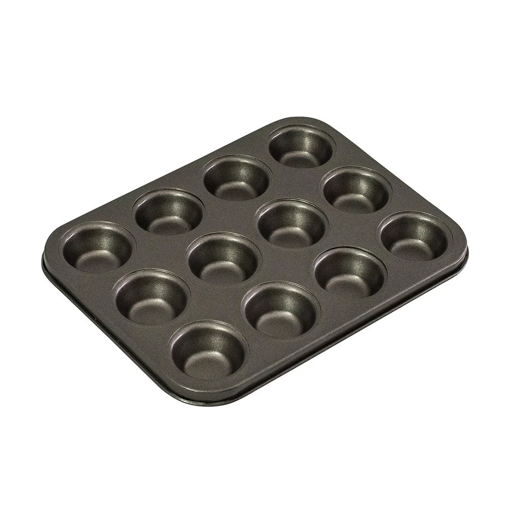 - 12-hole cake pan ideal for baking mini healthy muffins and decadent cupcakes