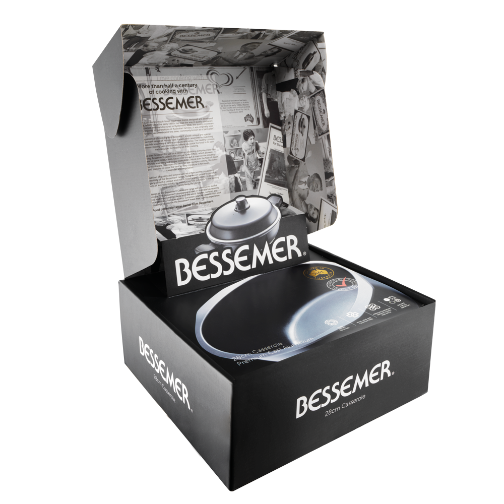 With generations of families using them, there’s no reason not to trust in the Bessemer name ? and now the iconic Australian cookware brand is available at House! The legacy of Bessemer speaks for itself, with many pieces still providing families with unparalleled results for decades. Whether you’re finally replacing mum’s old set or just looking to get one of your own, you can build an all-powerful cookware set with just a few pieces from Bessemer’s core signature range like this 28 x 12cm Casserole! Made using the same methods for 50 years, Bessemer cookware is crafted using premium grade, heavy gauge cast aluminium ensuring that Bessemer cookware is lighter and just as durable as your cast iron favourites, plus they can even cook oven staples like cake, pizza and roast on the stovetop thanks to their extra deep body and Bessemer’s patented ?oven effect” cooking capabilites when paired with the Bessemer Non Stick Universal Lid. The interior and exterior of Bessemer cookware features a premium European ceramic fusion triple layer non stick coating that provides smooth and effortless food release, abrasion and scratch resistance, and fast clean up every time you cook. Fitted with a magnetic stainless steel induction plate, Bessemer cookware is suitable for use on all cooktops and ensures a rapid and even heat distribution to prevent hot and cold spots, providing you with perfect results. Available in classic black and a stylish new red colourway, the new Bessemer cookware is exactly as remembered and ready to take on any recipe. Food definitely tastes better in a Bessemer?.