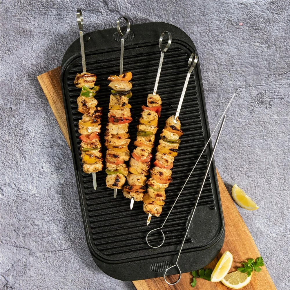 Achieve the ultimate cooked breakfast on the Cuisine::pro Grylt Cast Iron Reversible Grill! Designed to fit over two stovetop burners, this cookware is great for grilling or searing your food. Load it up with eggs, bacon, sausages or pancakes and enjoy the ultimate BBQ style breakfast with the family. The Grylt Cast Iron Reversible Grill comes pre-seasoned in the foundry and ready to use. It is expertly crafted from ultra-tough cast iron that allows for fast and even heat distribution with exceptional heat retention. This grill is generously sized and is capable of accommodating 6 to 8 steaks at a time. It is double sided in design, offering a ridged or smooth cooking surface. Enjoy a lifetime of durability and cooking versatility with the Cuisine::pro Grylt Reversible Grill!
