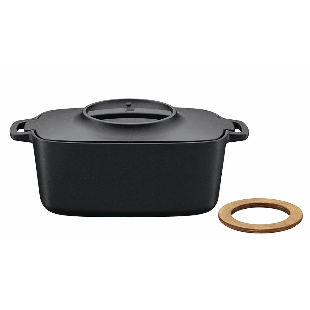 Prepare delicious, hearty stews, casseroles, soups and more for dinner using the high-performance Fiskars Norden Cast Iron Non-Stick Oval Casserole 5L! This generously sized casserole dish is the ideal vessel when cooking large meals to feed the family or dinner guests. Made in Switzerland, this casserole is expertly crafted from ultra-tough cast iron and is capable of withstanding high temperatures well while distributing heat evenly for a thorough cook. Equipped with unique Thermium mineral treatment, the Norden Casserole offers fantastic non-stick properties for easy food release. It features a removable Finnish birchwood trivet and is the winner of the 2018 Good Design Award. Explore your passion for cooking and achieve outstanding results with every use of the Fiskars Norden Cast Iron Non-Stick Oval Casserole!