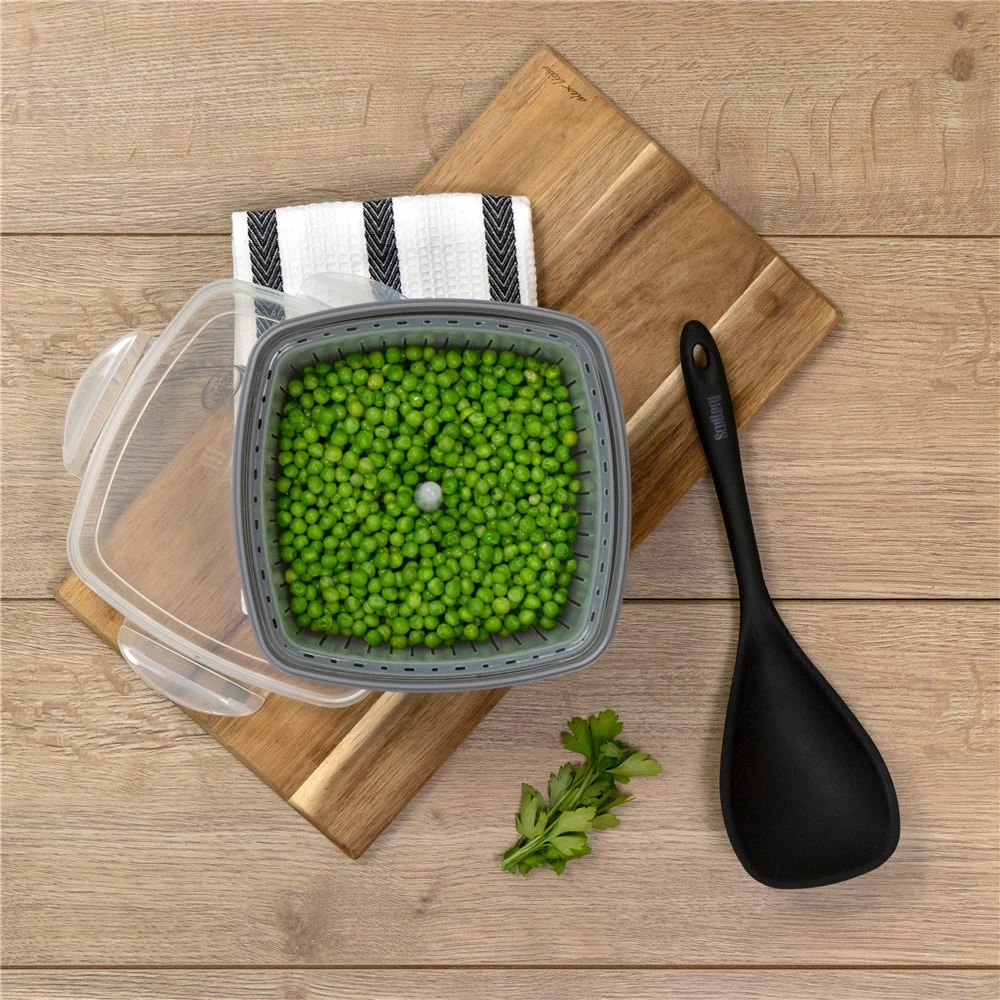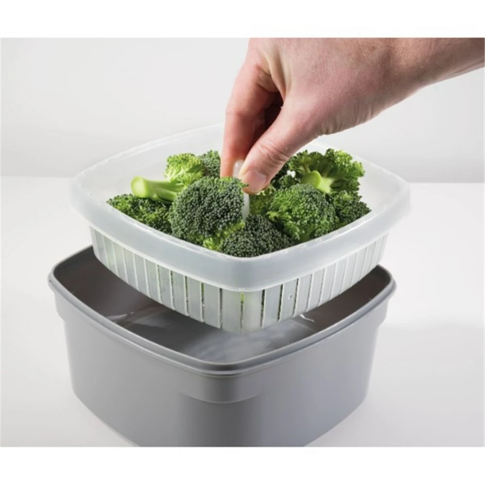 Complete your everyday dining experience with fresh and delicious vegetables cooked with the innovative and easy to use Fresh De Chef Microwave Vegetable Steamer! Specially crafted to simplify healthy cooking, this steamer retains the nutrients and flavours of your favourite vegetables and removes the need for oil. Simply add one cup of water into the base and place the steamer basket with your vegetable in it on top, clip the locking lid, open the steam vent and microwave until cooked! Cooking healthy and delicious meals has never been easier than with the Fresh De Chef Microwave Vegetable Steamer.