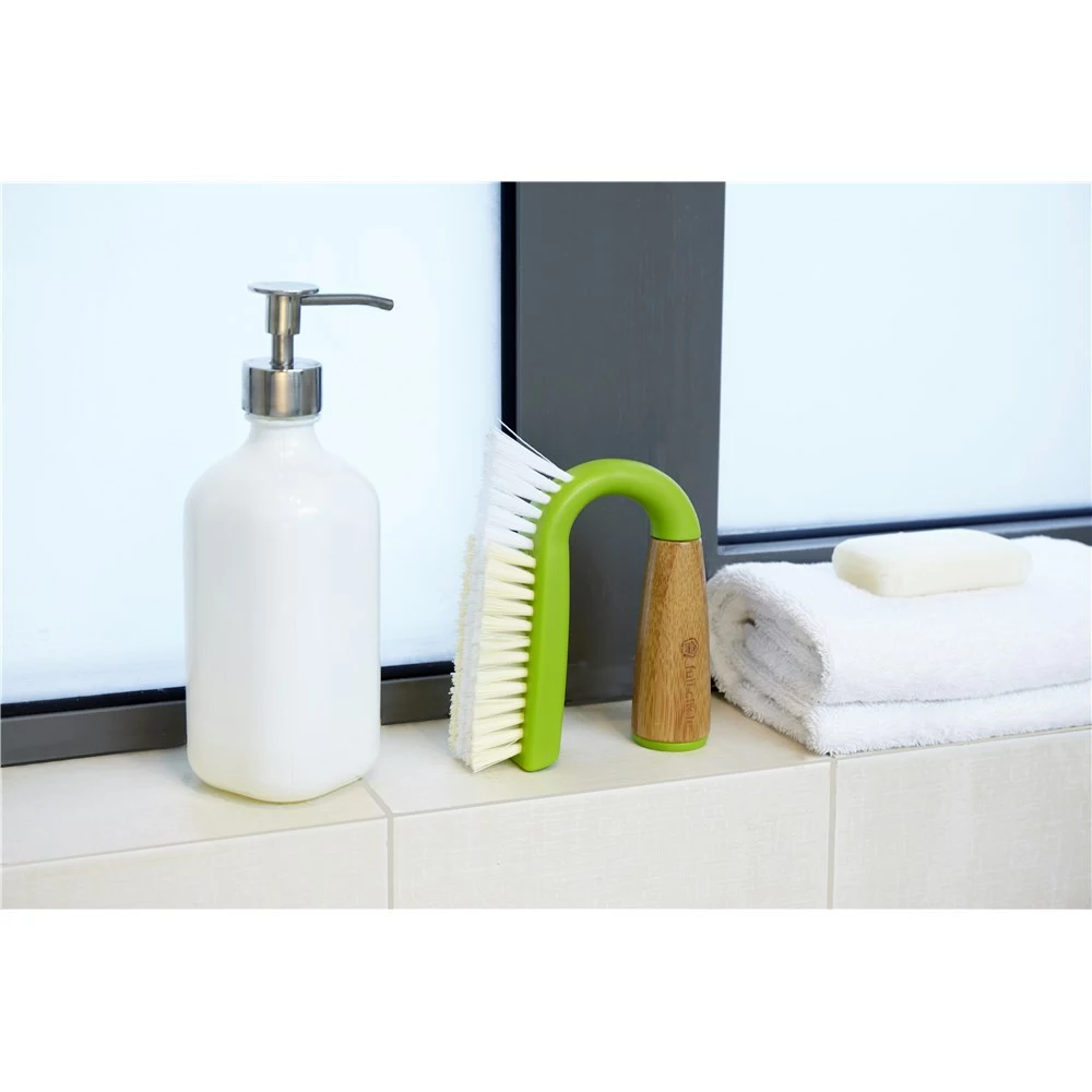 Achieve a sparkling clean kitchen and bathroom with the Full Circle Grunge Buster Grout & Tile Brush! Expertly crafted to simplify one of the most unpleasant household chores, this premium quality cleaning accessory is a must have item for every household. Made from recycled plastic and bamboo, this stylish scrubbing brush is specially designed with a curved handle which allows you to do more with less effort. Featuring soft bristles on the outside and tough, narrow middle bristles, the Grunge Buster is a highly versatile cleaning accessory that effectively cleans tiles and grout. Shaped like an iron, this superior cleaning tool is exceptionally comfortable to use and easy to stow away when not in use.
