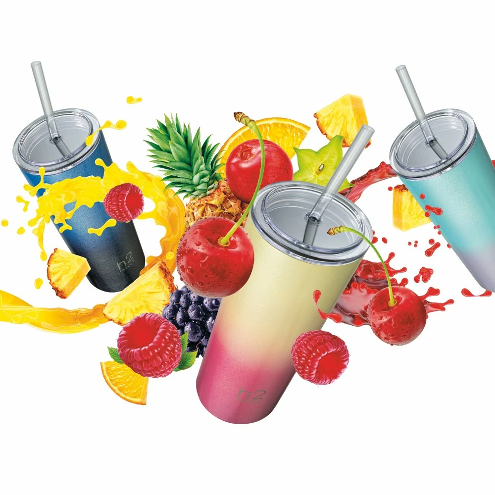 Price is for single item. Multiple items shown. Each sold separately. Subject to availability. Colours and styles may vary from time to time. Orders will be picked at random. With the h2 hydro2 Quench Smoothie Cup 600ml, you can make delectable smoothies, iced coffees, and cocktails! The h2 hydro2 Quench Smoothie Cup 600 ml is made of premium-quality Stainless Steel and has a double-walled vacuum insulation design for maximum temperature retention. It can be used for both ice drinks and hot beverages, keeping them at optimal temperature for up to 6 hours. The narrow and tall design allows you to use this smoothie whenever and wherever! The perfect companion for travelling, picnicking, or just sipping on your favourite drink at home.