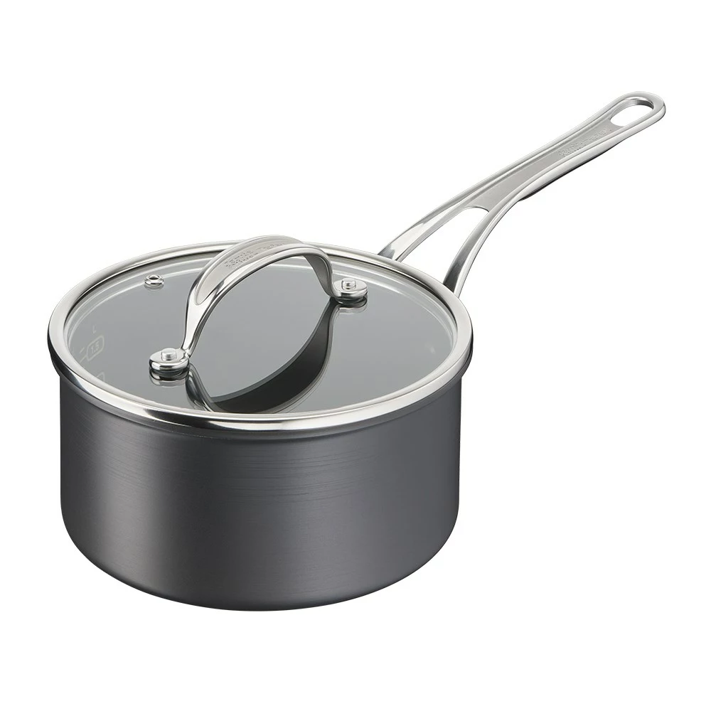 Boil, simmer and stew with the Jamie Oliver by Tefal Cooks Classic Induction Non-Stick Hard Anodised Saucepan 18cm with lid.