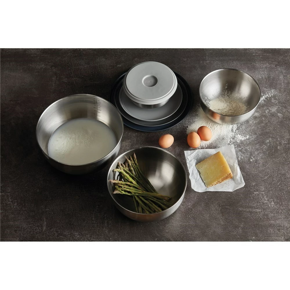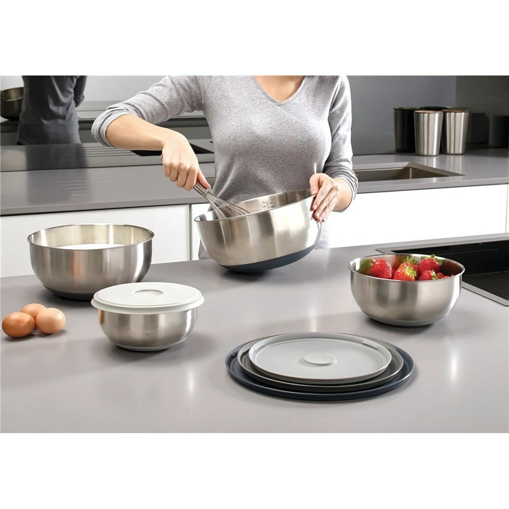Enjoy simple, convenient storage in your kitchen with the Joseph Joseph 100 Collection Nest! Crafted from high-quality stainless-steel, the 100 Collection Nest Prep & Store bowl set neatly stacks together taking up minimal space in your kitchen. Not only does the Joseph Joseph 100 Collection Nest Prep & Store look fantastic in any kitchen, it is also ideal for preparing and storing various types of food. Designed for durable long-life, the Joseph Joseph 100 Collection Nest Prep & Store is a progressively designed kitchen accessory that features easy-find, snap together lids and non-slip bases.