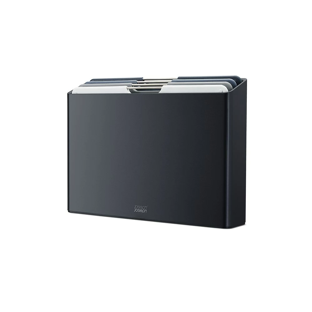 Prepare your meals in style with the beautifully designed Joseph Joseph Folio 4 Piece Chop Board Set Large Graphite