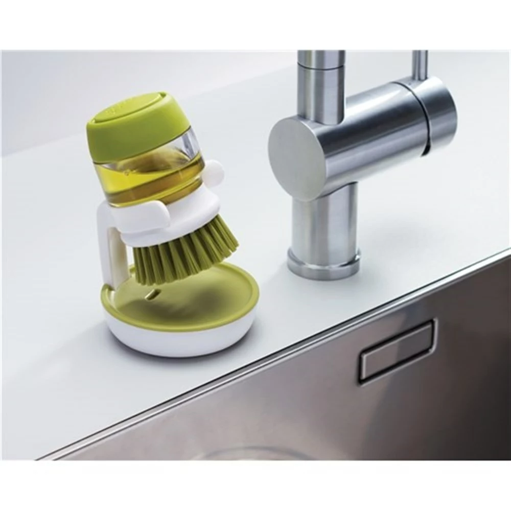 Be prepared in the kitchen with the Joseph Joseph Green Palm Scrub. This sturdy washing up brush is ideal for scrubbing those greasy pots and pans. The Joseph Joseph Palm Scrub washing up brush comes with its own convenient storage stand that allows the brush to dry hygienically and the whole palm scrub dismantles for easy cleaning. The easy to fill dispenser makes the Joseph Joseph Green Palm Scrub a functional kitchen essential.