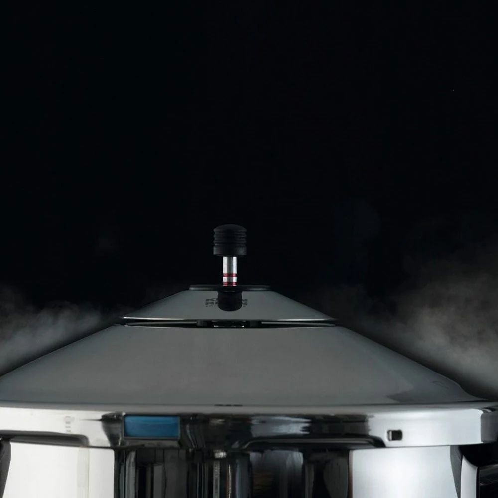 - Spring-loaded precision valve, integrated lid locking and 3 safety release systems. Instruction manual included.