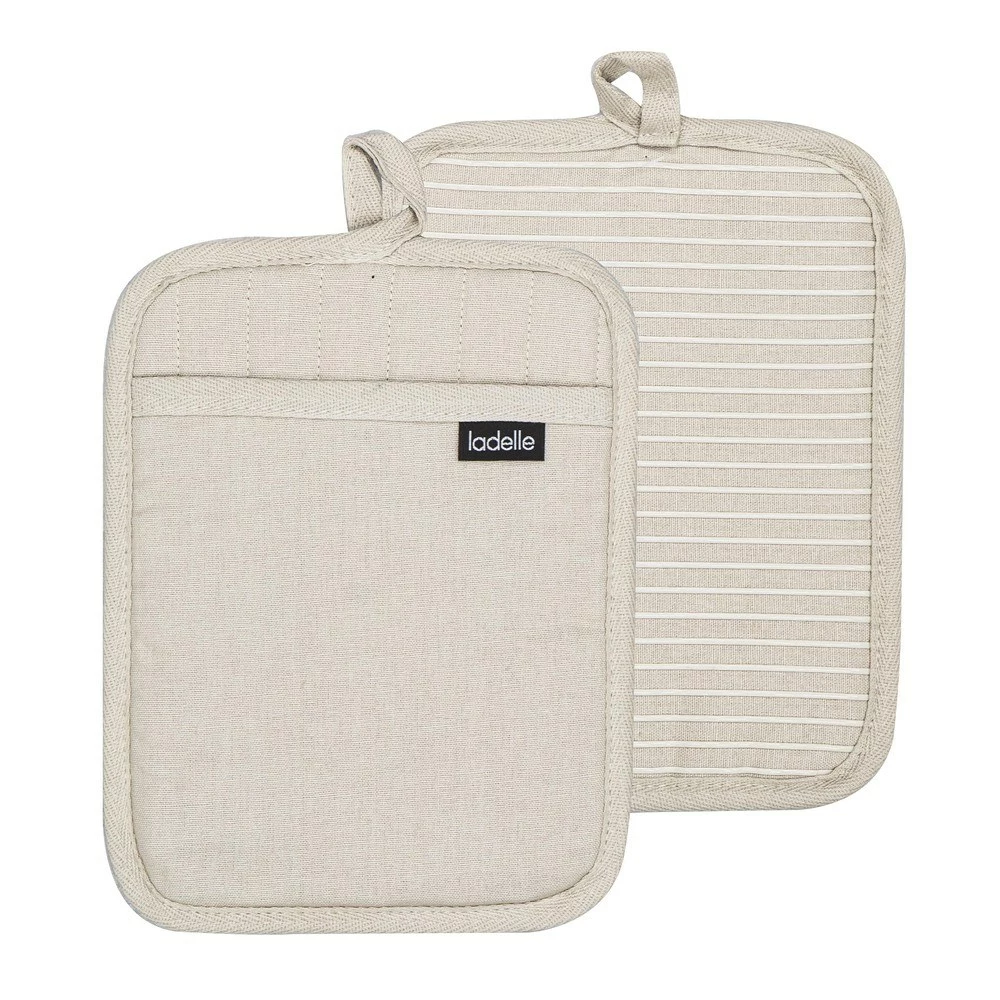 Up the style stakes in the kitchen with the Ladelle Lennox Set of 2 Pot Holders Stone