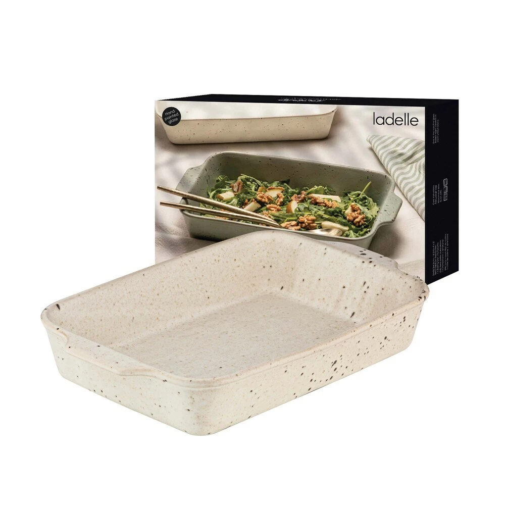 The sophisticated Ladelle Terra Baking Dish Medium Ecru goes right from the oven to the table. With the perfect balance of quality bakeware and stylish serving, the Ladelle Terra Baking Dish Medium Ecru is a versatile vessel for effortless entertaining. Designed in Australia, it is crafted from premium quality stoneware for durability and rustic design appeal. With a reactive glaze in a gentle Ecru base tone, the dish is fired twice at high temperatures to naturally incorporate Terra’s signature hand-applied scorched speckles resulting in a truly distinct appearance. The Ladelle Terra Baking Dish Medium Ecru makes an infinitely stylish addition to your serving collection. Beautifully boxed, it’s also an excellent gift option for birthdays, housewarmings and other special occasions.