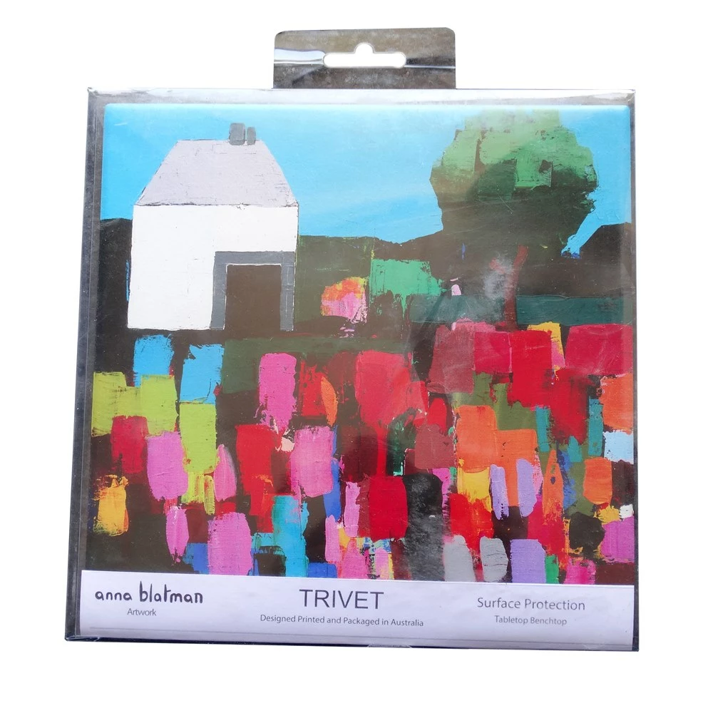 Add an elegant touch to your kitchen counters and dining area with the beautiful Lilli Rock Adler Estate Trivet. Acting as a barrier between piping hot pots, pans and dishes and the surface below, the Lilli Rock Adler Estate Trivet offers protection up to 220 degrees Celsius. Crafted from quality dolomite stone and backed with a soft cork layer, it also protects against liquids, scuffs and scratches. Designed by gifted Australian artist Anna Blatman, this beautiful trivet showcases a gorgeous abstract depiction of a tranquil cottage beside a stunning field of vibrant flowers. Easy to keep clean with a damp cloth, this trivet will gracefully transition from kitchen to tabletop to add a touch of elegance to every meal. Pair the Lilli Rock Adler Estate Trivet with the matching Adler Estate Set of 4 Coasters for a chic, coordinated tabletop.