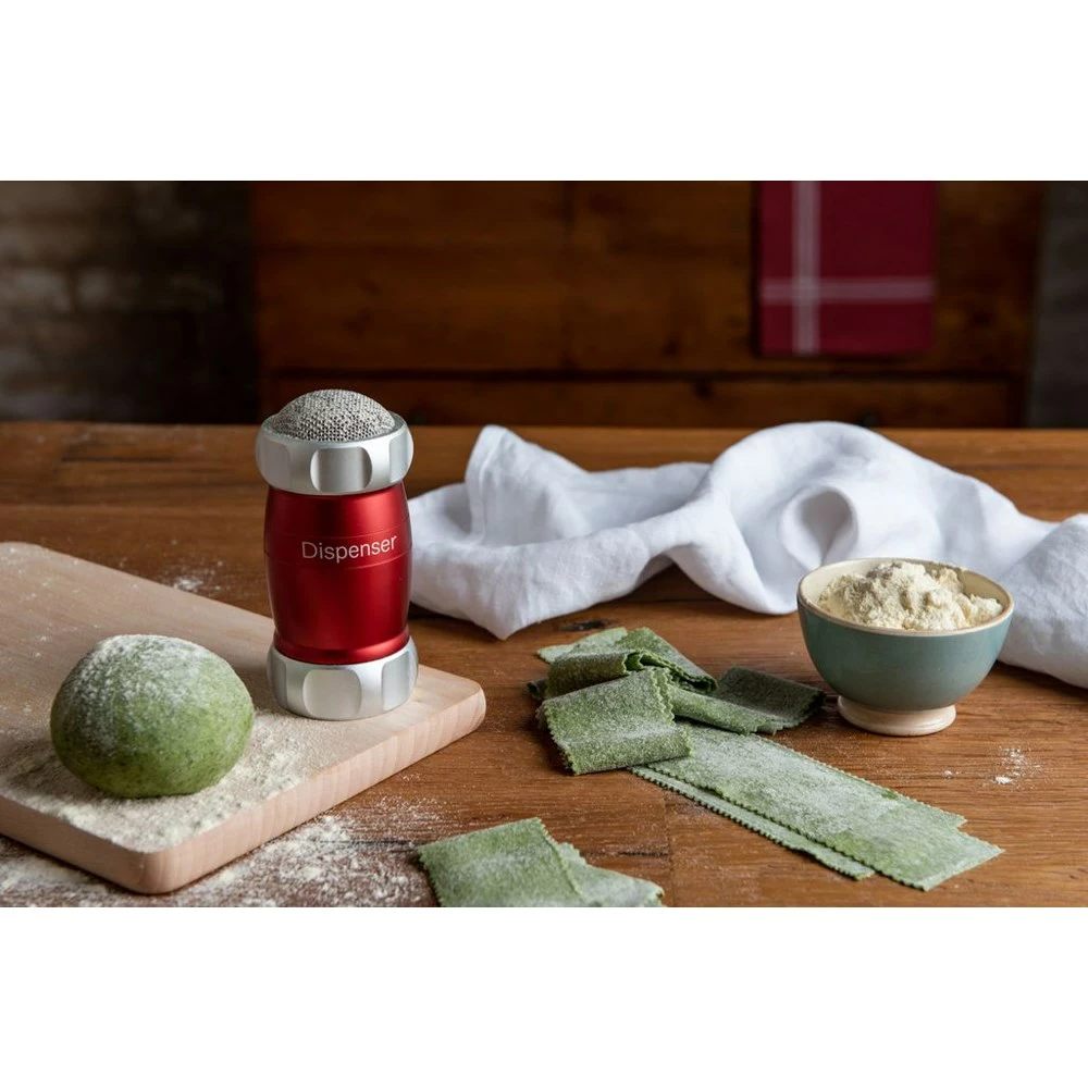 The Marcato Dispenser/Shaker provides an effortless way to sift flour while preparing pasta and baked goods