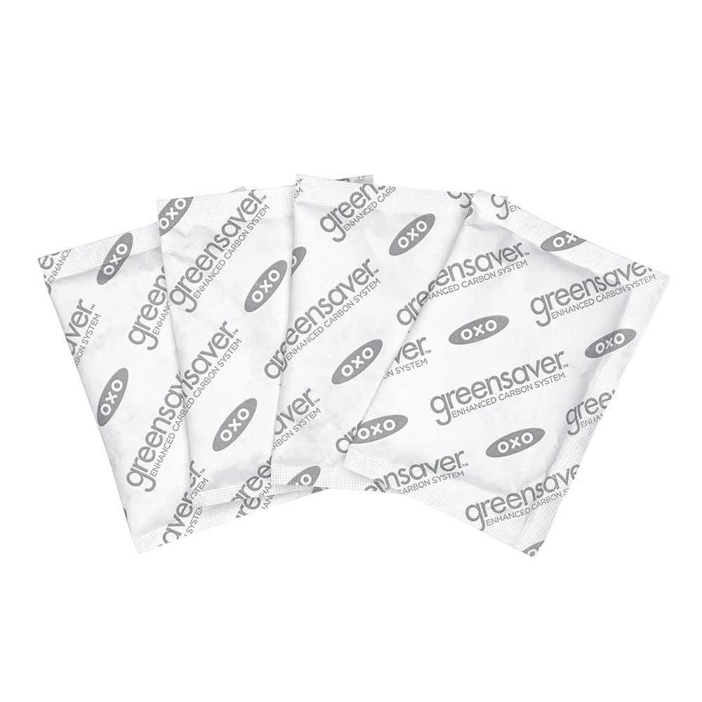 The OXO Good Grip GreenSaver Carbon Filter Refills trap and absorb gases from produce to keep spoilage at bay. Fruits and vegetables naturally emit ethylene gas, which causes premature spoilage. GreenSaver’s non-toxic, enhanced carbon filters help keep produce fresh longer by absorbing ethylene gas. Each filter lasts 90 days, giving you a year of freshness from a 4 pack, and can be used with any GreenSaver products. Keep your fresh produce fresh and healthier for longer with the help of OXO Good Grip GreenSaver Carbon Filter Refills Pack of 4.