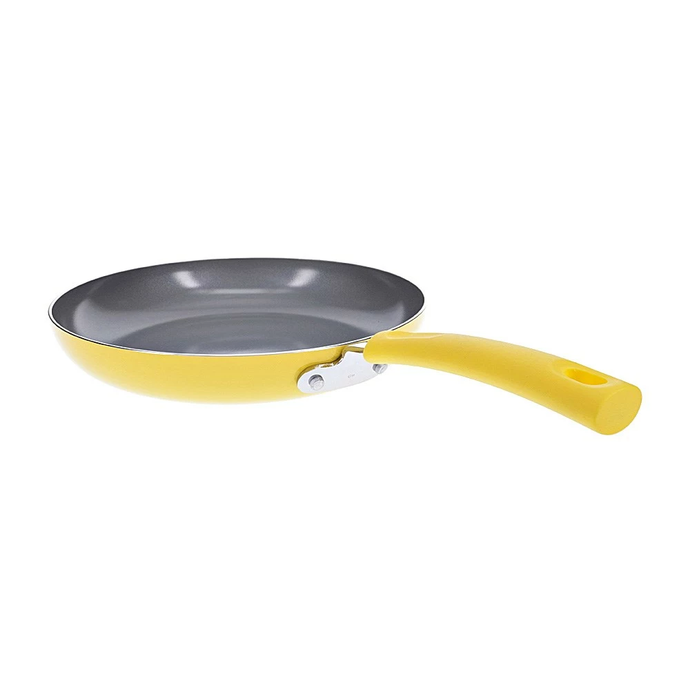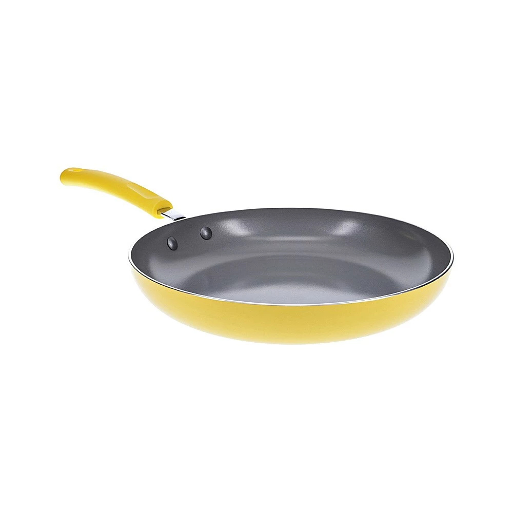 Enjoy the ultimate fry up for breakfast, lunch or dinner using the Scullery Kolori Ceramic Non-Stick Frypan 26cm! With a durable hard-pressed aluminium body, the Kolori Frypan achieves rapid heat transfer and even cooking while eliminating hot spots. Boasting a vibrant yellow colour scheme, this frypan is a great way to introduce a pop of personality and fun to your culinary space. Innovatively designed with a ceramic non-stick cooking surface, the Scullery Kolori Frypan guarantees exceptional food release and easy cleaning. It comes equipped with an ergonomic soft-touch handle made from high-quality silicone for a comfortable and secure grip while you cook. The Kolori Ceramic Non-Stick Frypan is suitable for gas, electric, ceramic and halogen cooktops and is the perfect piece for cooking fried eggs, meats, pancakes and more. Cook up the ultimate fried feast with the Scullery Kolori Ceramic Non-Stick Frypan!