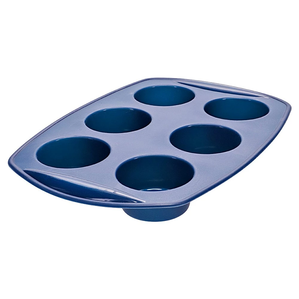 Bake the ultimate afternoon tea snack with the stylish and functional Kolori Silicone 6 Cup Muffin Tray! Ideal for baking anything from mini pies to sweet chocolate ship muffins, this baking tray is a versatile addition to your culinary collection. It is made from premium quality silicone which is ultra-durable and flexible with a non-stick interior for fuss-free food release. Boasting a brilliant navy blue colour scheme, the Kolori 6 Cup Muffin Tray brings a pop of vibrance to your kitchen and is guaranteed to inspire endless delicious culinary creations. Mix and match with additional pieces from the Kolori range to enjoy the ultimate coordinated culinary collection. Ultra-tough and easy to clean, this muffin tray is dishwasher safe for your convenience.