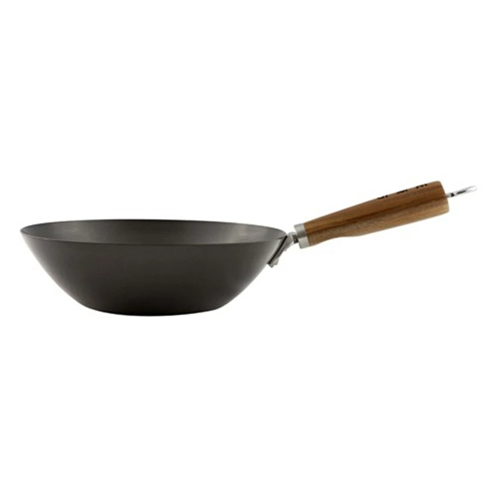Become your own master chef with this easy-to-use Soffritto 26cm Non-Stick Wok. The 26cm surface is perfect for just about any meal, from a romantic dinner for two to a blowout bash at your house. This durable and versatile wok can be used on just about any cook top — halogen, electric, gas, or ceramic. The handle is crafted from acacia wood, which means that not only is it beautiful and easy to hold; it will also remain cool to the touch while you cook. You can easily store this Soffritto 26cm Non-Stick Wok by hanging it off of the hook attached to the end of the handle, saving precious space in your cabinets and drawers. When the meal is over, the non-stick surface of the Soffritto 26cm Non-Stick Wok is easily cleaned with some soap and water — no elbow grease involved!