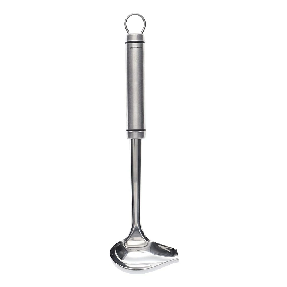Cover your roast dinner in delicious homemade gravy using the Soffritto A Series Stainless Steel Gravy Ladle! Designed and engineered to the highest professional standards, this servingware is a premium addition to your kitchen. It is expertly crafted from premium stainless steel and features a lengthy handy and a pouring lip for fuss-free serving. With a convenient hanging loop, the A Series Gravy Ladle offers space saving storage for your convenience. Mix and match with additional pieces from the A Series range by Soffritto for the ultimate collection of quality kitchenware. Easy to clean and ultra-durable in design, the Soffritto A Series Gravy Ladle is dishwasher safe for your convenience.