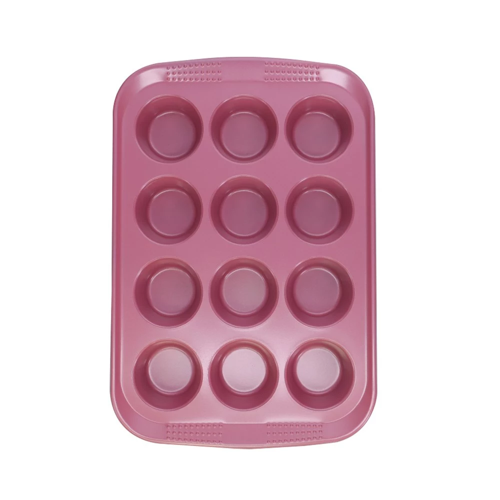 Bake delicious sweet and savoury muffins, pies and more with the Soffritto Commercial Non-Stick Carbon Steel 12-Cup Muffin Pan! Made from superior quality heavy-duty carbon steel, the Commercial 12-Cup Muffin Pan is ultra-durable and designed to withstand daily use. It features a durable PFOA free non-stick coating which offers easy food release and fuss free cleaning. Designed with a beautiful metallic pink colour scheme, this stylish muffin pan brings a pop of personality and vibrance to your kitchen. It is fridge, freezer and oven safe to 230-degrees Celsius and is perfect for baking mini pies, mini quiches, muffins and more. To care for this high-quality muffin pan, simply hand wash in warm soapy water. Mix and match with additional pieces from the Commercial range by Soffritto for the ultimate coordinated culinary collection.