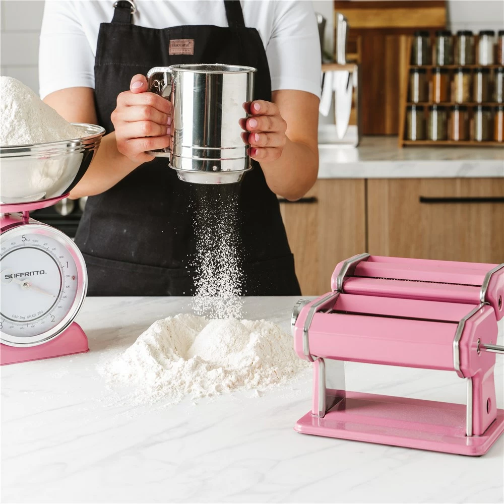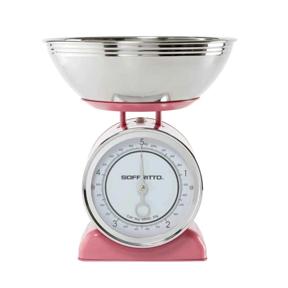 Measure with accuracy and style with the Soffritto Mechanical 5kg Kitchen Scale in pink.