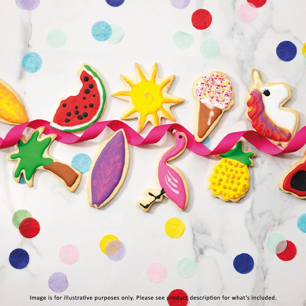 - Create adorable cookie shapes with stainless steel cutters such as pineapple, palm tree, flamingo, sunglasses and more