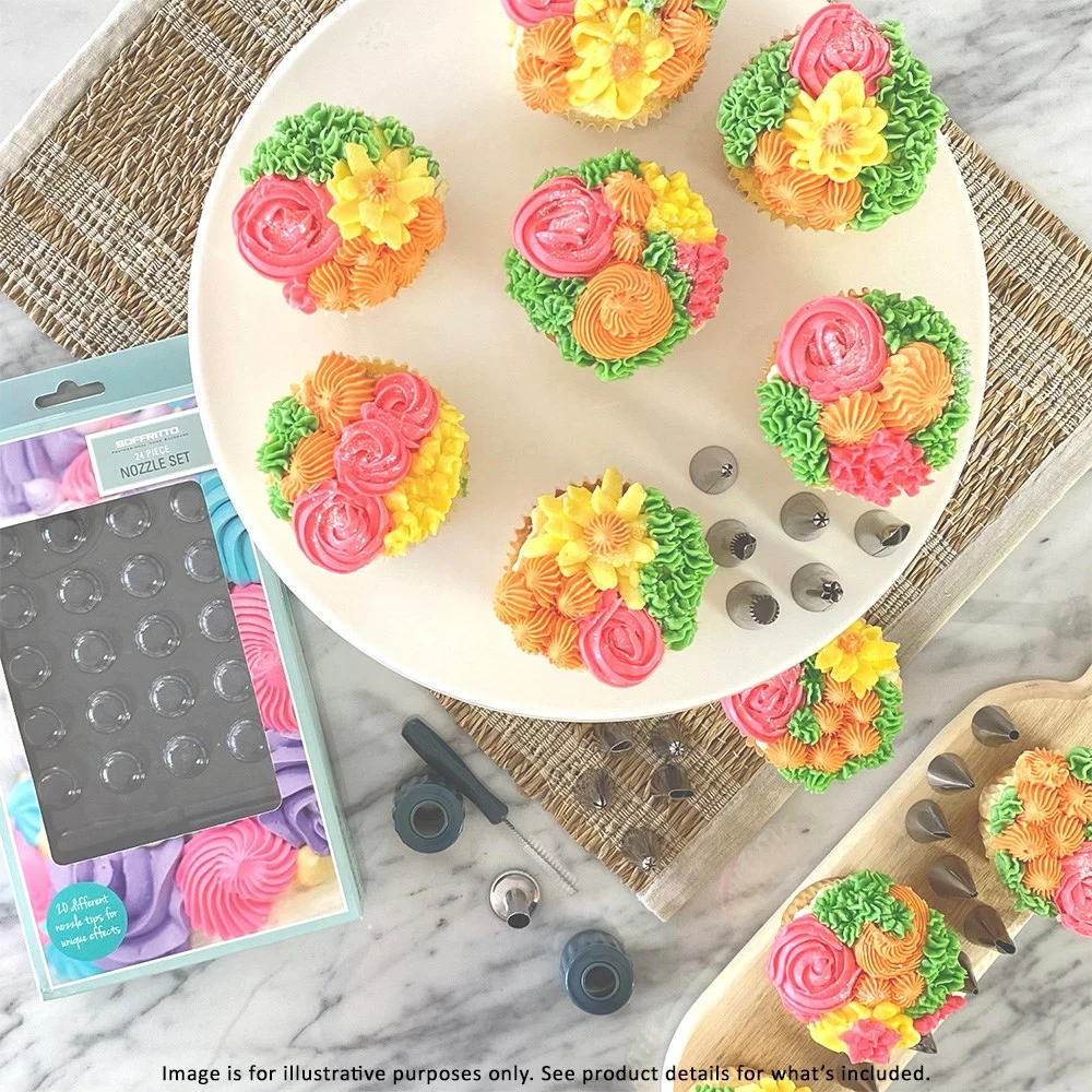 Pipe perfect cake, cupcake and cookie decorations with the premium Soffritto Professional Bake 24 Piece Stainless Steel Piping Nozzle Set! This fully comprehensive baking accessory set is perfect for amateur and experienced home and professional bakers. Including a coupler set, cleaning brush, large puff nozzle and 20 nozzles of assorted style made from quality food grade stainless steel, the Soffritto Professional Bake Piping Nozzles are designed for lasting durability and performance. Giving you freedom to get creative with your baking, the Soffritto Professional Bake Piping Nozzles let you create grass, stars, flowers, lettering, and more, guaranteed to impress your friends and family. BPA and toxin free, the Soffritto Professional Bake Piping Nozzles are even dishwasher safe for quick and easy cleaning. Explore your passion for baking sweet treats and decorate with the Soffritto Professional Bake 24 Piece Piping Nozzle Set!