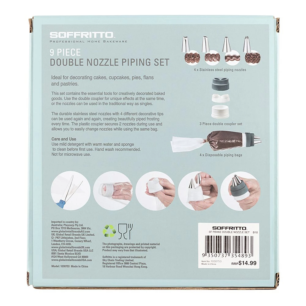Master your cake decorating skills with the Soffritto Professional Bake Double Nozzle Set!