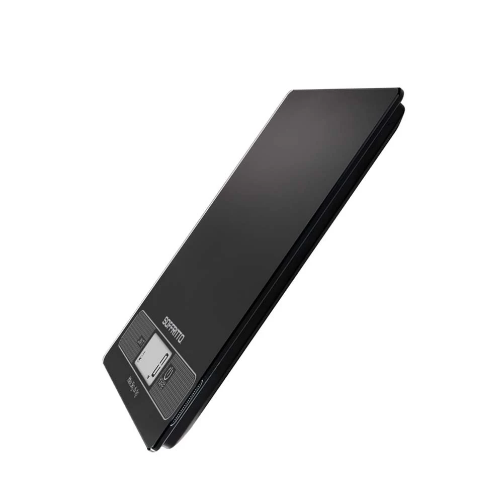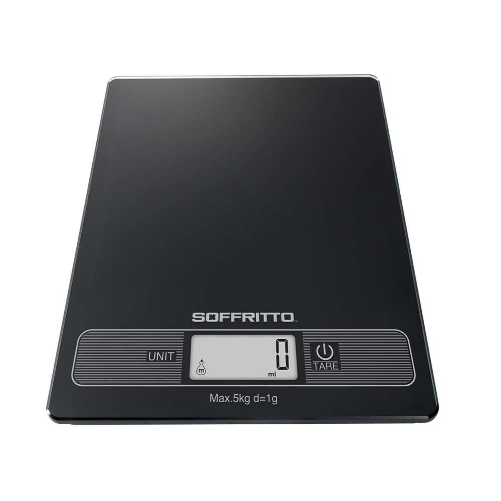 The Tina III Digital Scale from Soffritto reintroduces a bright backlit display, now in LED form. With a razor sharp image quality and slimmer design, rely on an easy to read display in any low light environment, along with more economical power consumption. Convert easily between metric and imperial units, with an accurate measurement range all the way from 1g to 5kg. The refined, jet black casing is compact for easy storage and deftly complements any kitchen setting, while the tempered glass surface is remarkably easy to clean. For measuring in the kitchen, the Soffritto Professional Tina III Digital Scale is a reliable, sophisticated choice. Requires 1 x 3V Lithium Call Battery to operate (Battery is included). Please note that these are hazardous to young children.