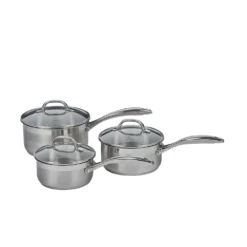 - Includes 1 x 16cm, 1 x 18cm and 1 x 20cm saucepans