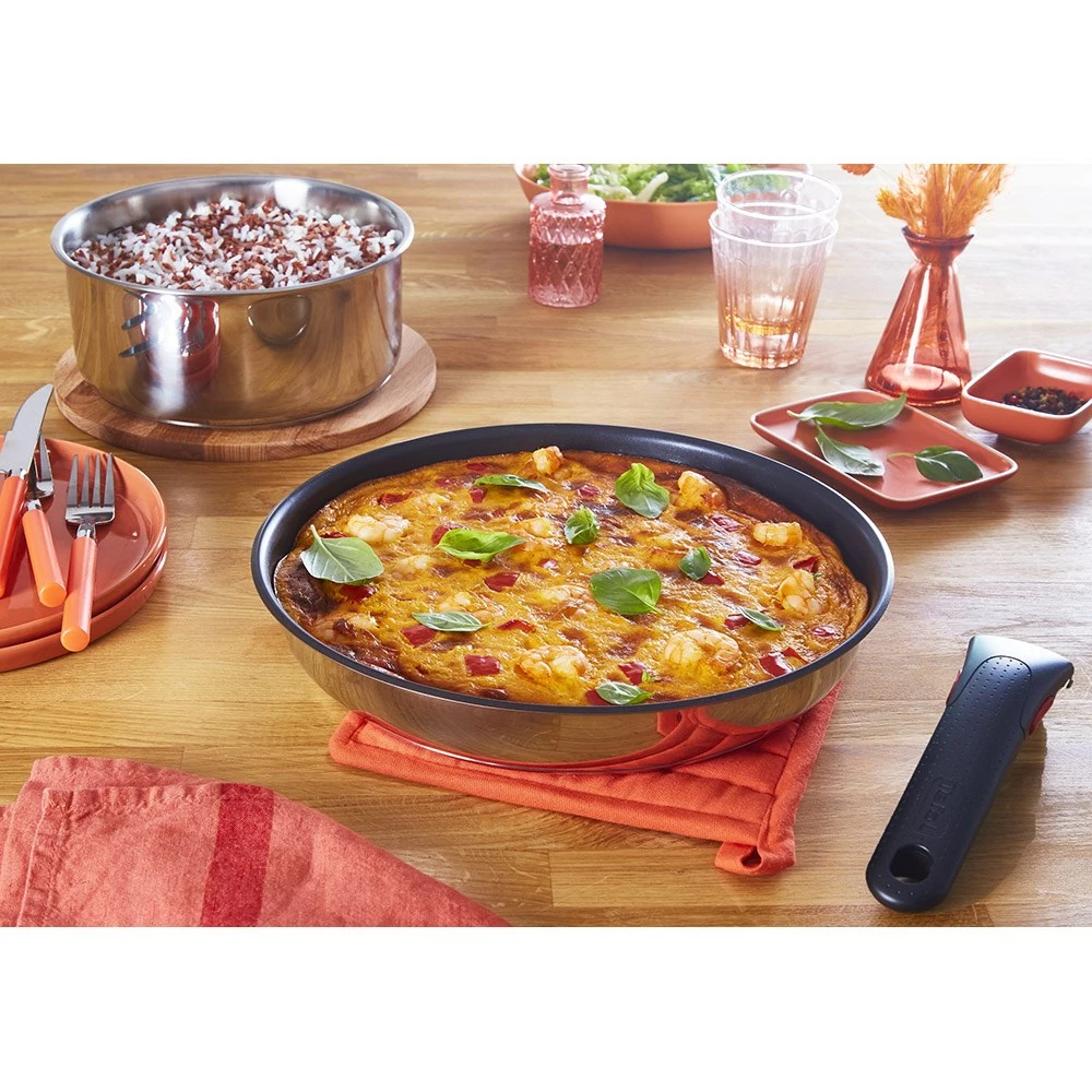 For meals that pack a flavourful punch, prepared in no time, cook with the Tefal Fast & Easy Induction Stainless Steel Pressure Cooker 8LNeed a set that can do it all? Look no further than the Tefal Ingenio Preference 12 Piece Induction Stainless Steel Cookware Set. With zero compromises on quality, the Tefal Ingenio Preference 12 Piece Induction Stainless Steel Cookware Set is a fantastic choice for smaller kitchens thanks to its smart, space-saving design and ability to stack together to take up minimal cupboard space. This extensive set includes a 22cm frypan, 26cm frypan, 26cm wok, 24cm saute pan, 22cm saucepan, 2 removable handles, three 22cm, 24cm and 26cm glass lids and two 22cm and 24cm storage lids. This super stylish and versatile cookware can seamlessly transfer from the cooktop to the oven, to the dining table, to the fridge, to the dishwasher. The cookware’s premium 18/10 stainless steel bodies are paired with ultra-thick induction compatible bases and Tefal’s top-quality anti-scratch, non-stick coating that lasts up to an incredible six times longer than their standard Titanium coating. Cook with peace of mind knowing that each piece of cookware features safe and secure handle fixation points which support a weight up to 10kg. Easy to clean by hand or in the dishwasher, the Tefal Ingenio Preference 12 Piece Cookware Set makes a great addition to any kitchen.