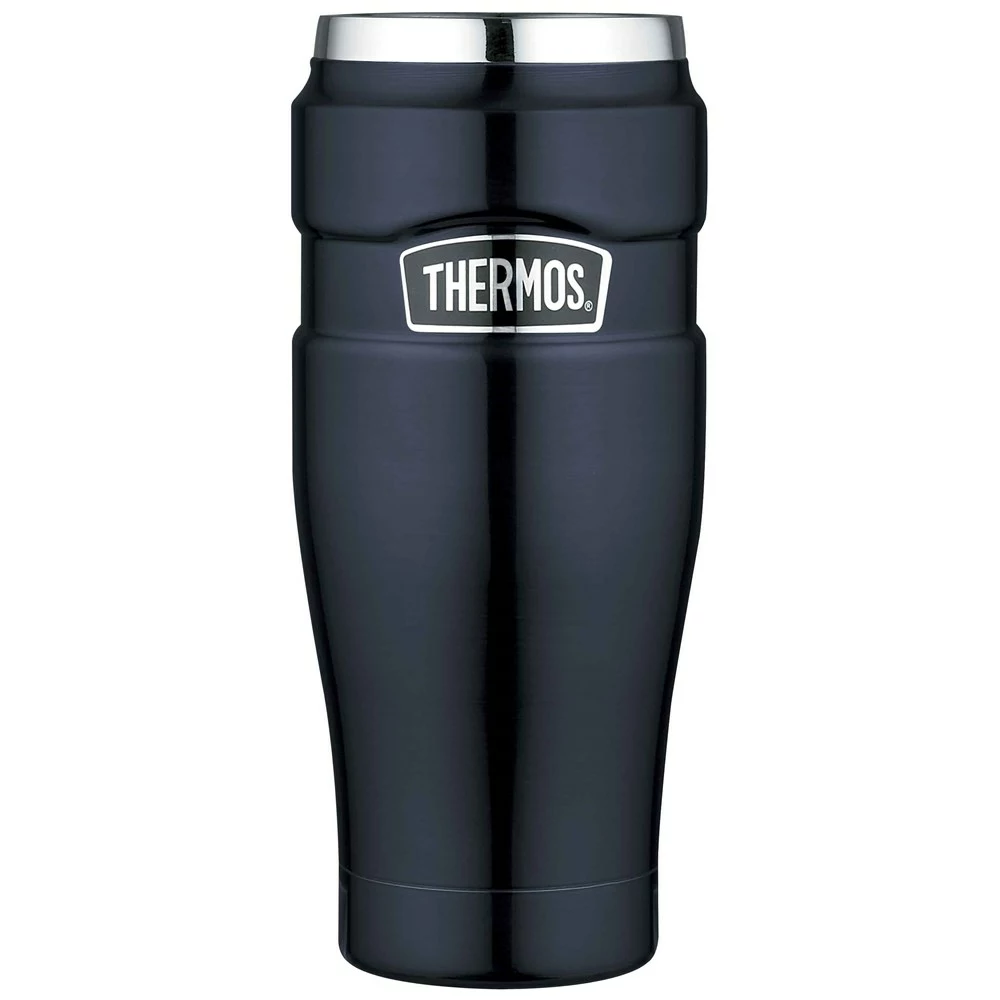Keep your beverage warm or cold with the Thermos Stainless King 470ml Tumbler Vacuum Insulated Midnight Blue